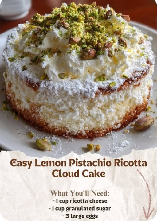 A heavenly, fluffy cake with bright lemon zest, creamy ricotta, and nutty pistachios—perfect for brunch, tea time, or any occasion that calls for a taste of sunshine!